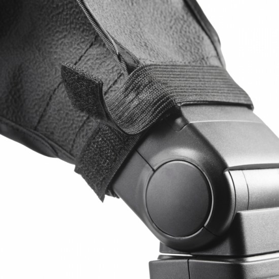Crafted from high-quality nylon fabric, the softbox features a reflective inner lining that maximizes light output while maintaining a soft, diffused effect. The front diffusion panel further smooths the light, ensuring that your images have balanced, professional-quality lighting. The softbox easily attaches to any speedlite using a velcro strap, making setup quick and hassle-free.
