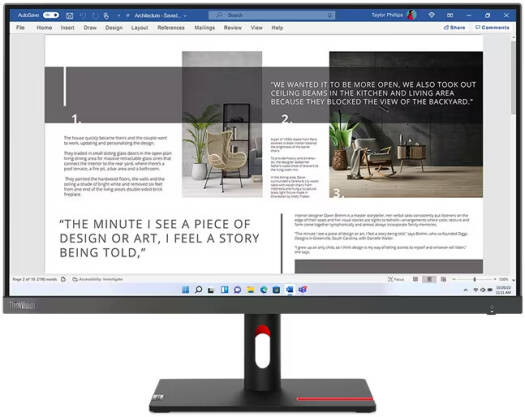 Finished in Raven Black, the Lenovo ThinkVision S27i-30 adds a sleek, modern look to any workspace. Its slim bezels maximize screen space and enhance visual immersion, making it ideal for multi-monitor setups or standalone use.The stylish design ensures it fits seamlessly into professional offices, home offices, or study areas.