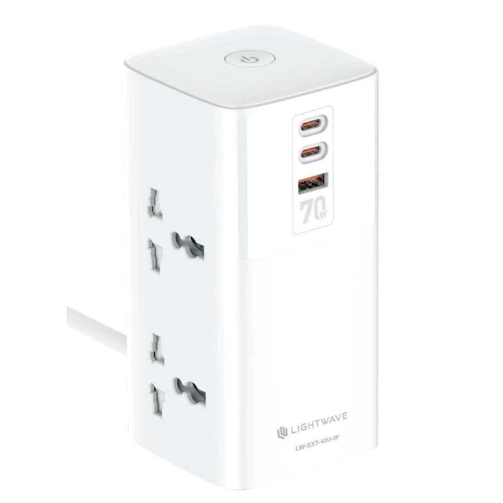 The Lightwave Extension Socket – 3 Metres – LW EXT 43U is a versatile power accessory that combines multiple mains outlets with USB charging ports, offering a convenient solution to power and charge multiple devices from a single wall socket. With a 3 metre cable, this extension lead gives you flexibility in placement, making it ideal for homes, offices, study areas, and entertainment setups.
