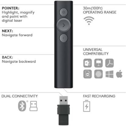 The Logitech Spotlight Presentation Remote is more than a slide clicker—it's a powerful tool that elevates your presentations with precision control, smart time tracking, and interactive highlighting. Designed for business professionals, educators, and keynote speakers, the Spotlight Remote makes every presentation smoother, smarter, and more engaging.