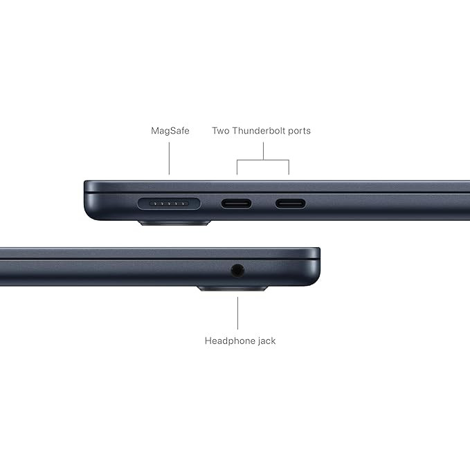 Weighing just 1.24kg, the MacBook Air M3 is both portable and sturdy. Constructed from recycled aluminum and offered in elegant finishes like Midnight and Starlight, it complements both professional and casual environments.