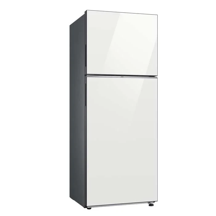 Offering a total of 415 litres, this Bespoke top mount refrigerator provides ample room for fresh and frozen foods. It includes adjustable toughened glass shelves, a large vegetable drawer, and well-organized door compartments to keep groceries neatly arranged.
