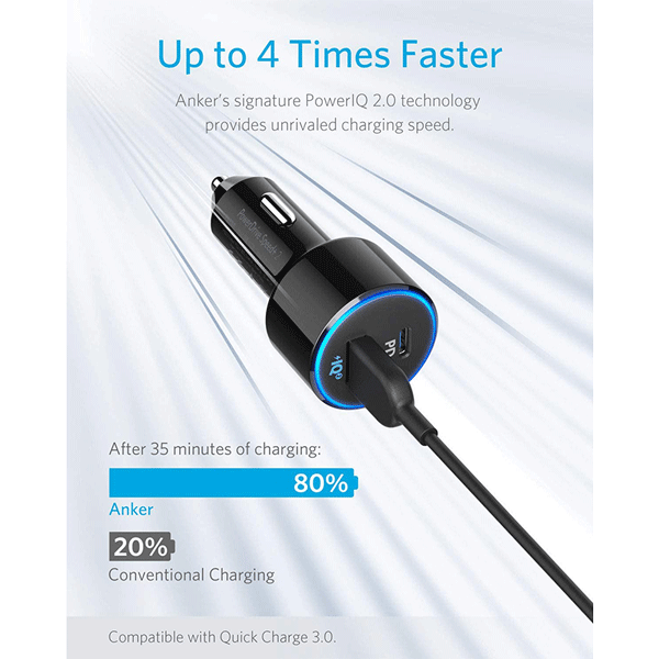 - Anker’s proprietary PowerIQ technology intelligently identifies connected devices to deliver the fastest possible charge.