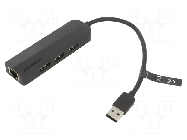 Vention 3-Ports USB 2.0 Hub 0.15M with LAN Black VEN-CHPBB suits professionals working in offices or remote settings
